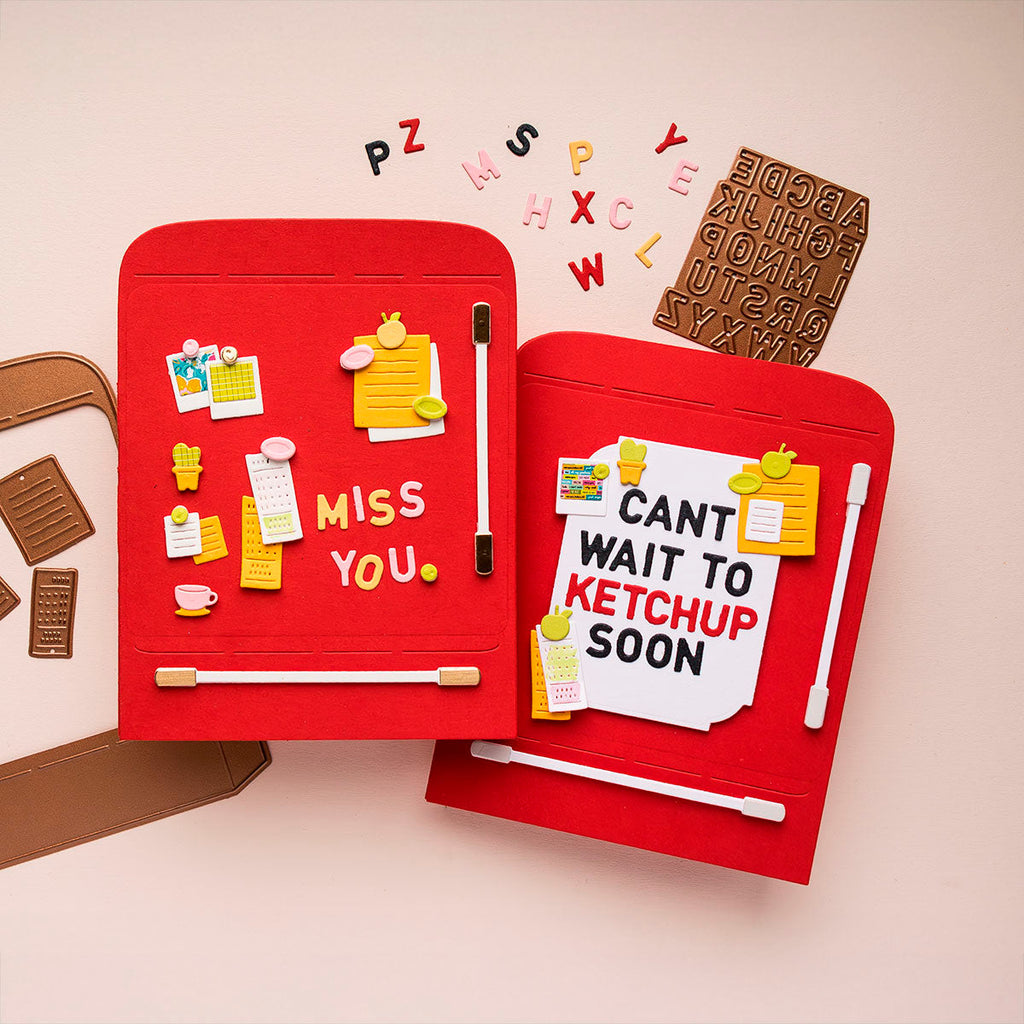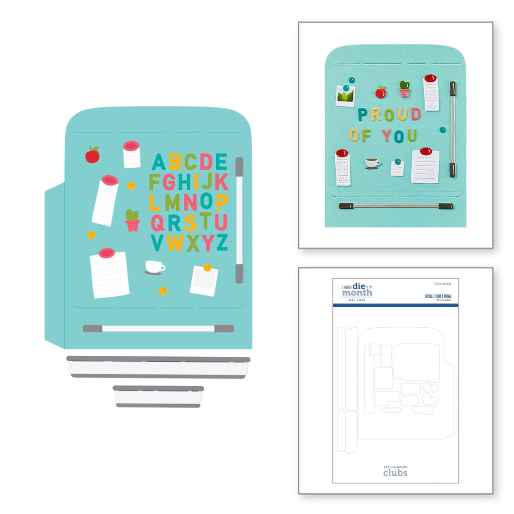 Spell It Out Fridge - May 2025 Large Die of the Month: Celebrate everyday moments and sweet sentiments with the “Spell It Out Fridge” Large Die of the Month. This playful set creates a retro-style fridge covered in colorful letter magnets, notes, tiny accessories, and magnets you can mix and match for creative fun.