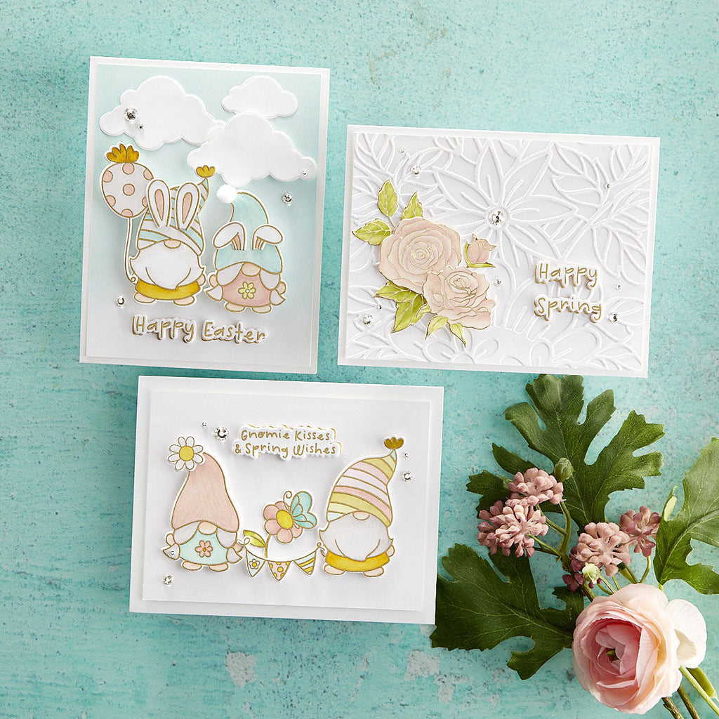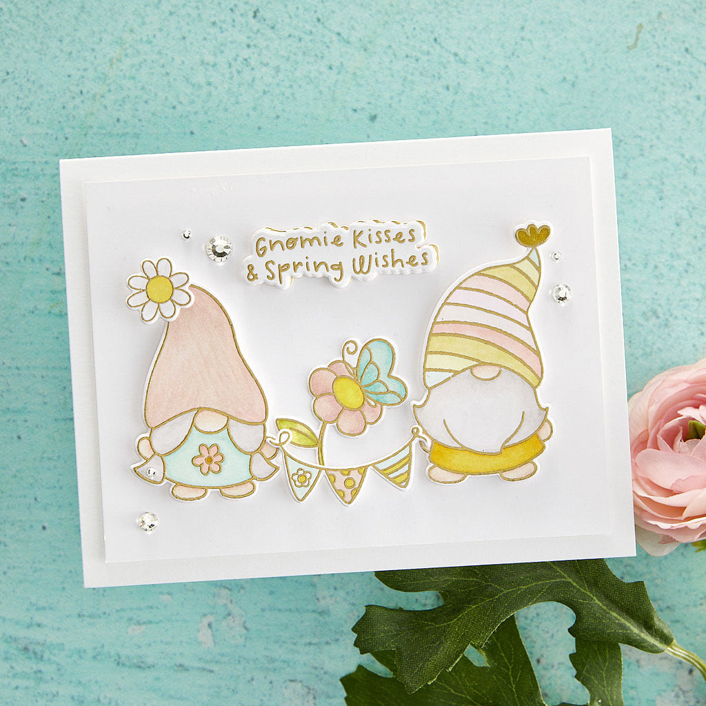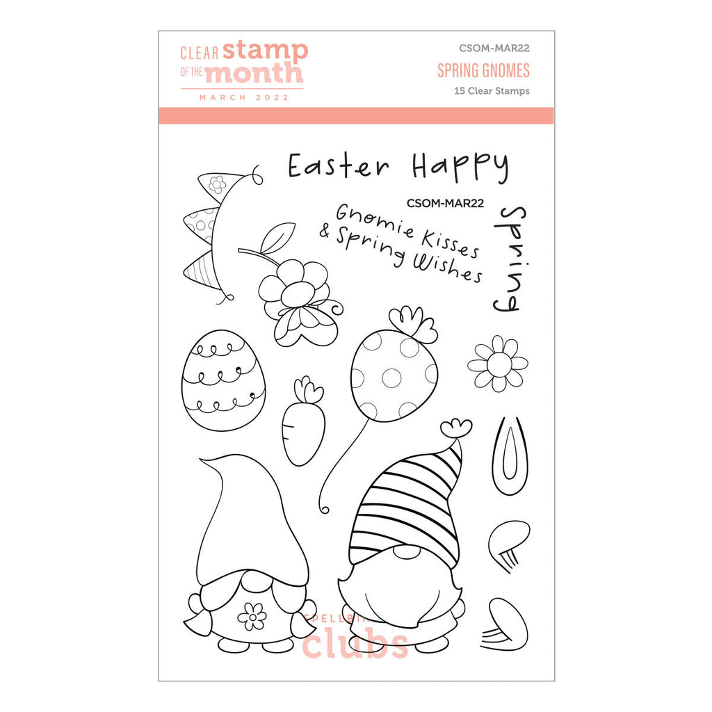 The 15-Piece Spring Gnomes - Clear Stamp of the Month adds beautiful stamped sentiments for a variety of greeting cards. Released March 2022 to our New Clear Stamp of the Month Club. This beautiful floral clear stamp set features high quality photopolymer for clear, crisp impressions. Made in the USA. Our stamps create one of the best impressions on the market giving you a perfect stamped image every time!