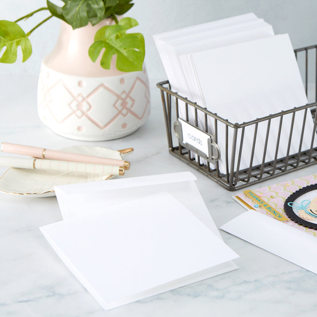 Square White Card Bases - 25 pack is made from high quality Neenah Classic Crest 80# Cover Solar White. Contains 25 scored card bases. Each envelope measures 5 1/4 x 5 1/4".