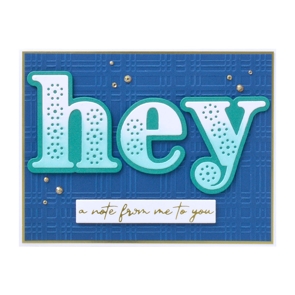 Stitched Alphabet Note Glimmer Sentiments Hot Foil Plates is from the Stitched Alphabet Collection. This set of 2-piece plate set includes "Be Bold", and "a note from me to you". Pair them with any of the letters/punction dies and Glimmer Discroports from the same collection to personalize your projects even more!