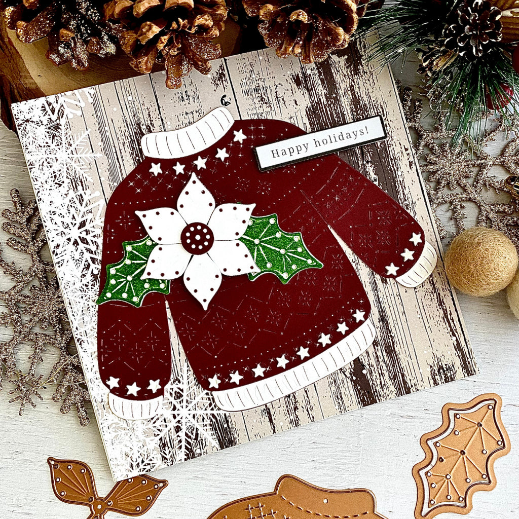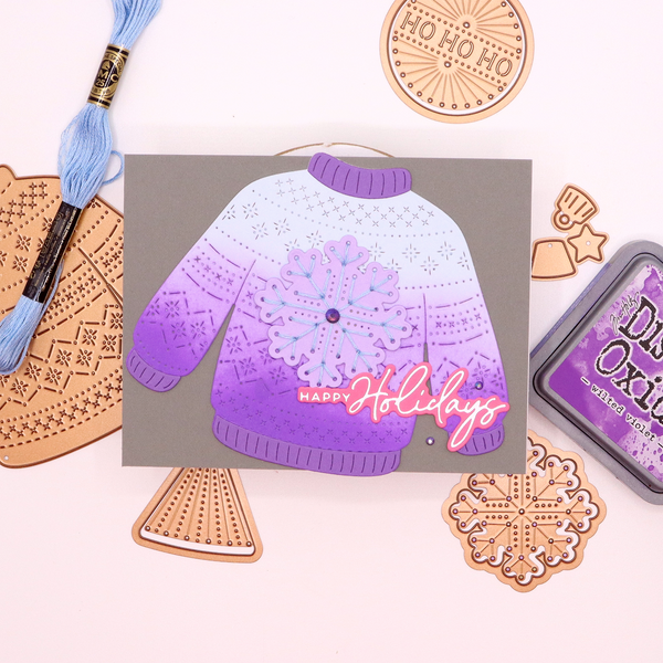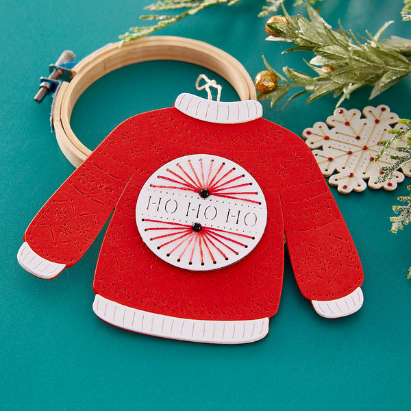 Stitched Christmas Sweater Etched Dies are part of the Stitched for Christmas Collection by Spellbinders. This set of nine thin metal cutting dies creates a stitched holiday sweater with its trim layers for a fun base to personalize a fun sweater motif! Each ornament has its own insert die to make a stitching guide or leave as is for an intricate design. Be creative and come up with your own kind of holiday greeting! Designer’s Tip: Using two strands of a six strand DMC Floss or DMC Diamant Metallic Thread and a Size 22 Tapestry Needle (sold separately) are recommended.