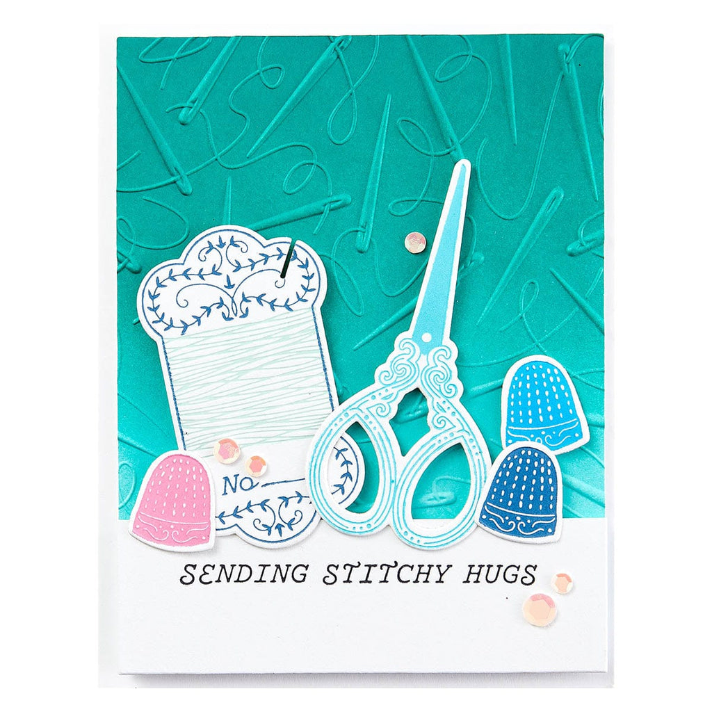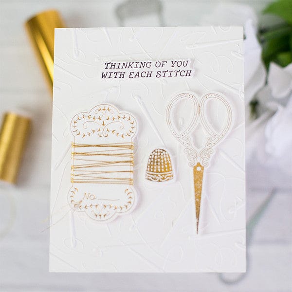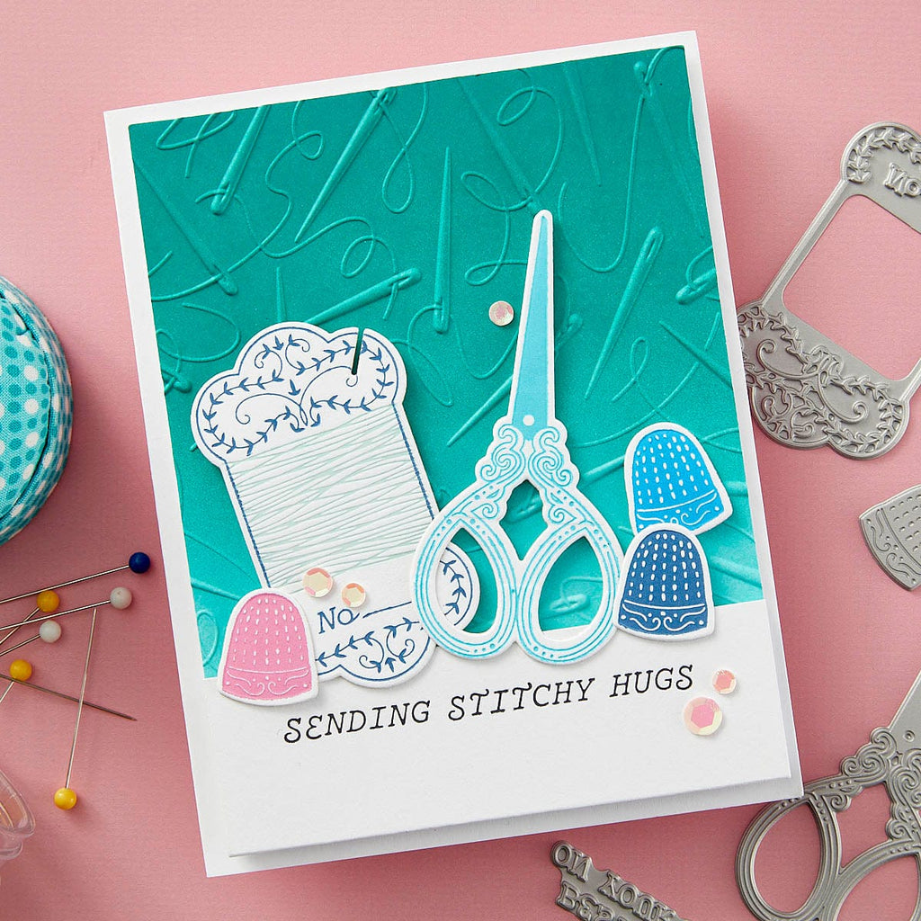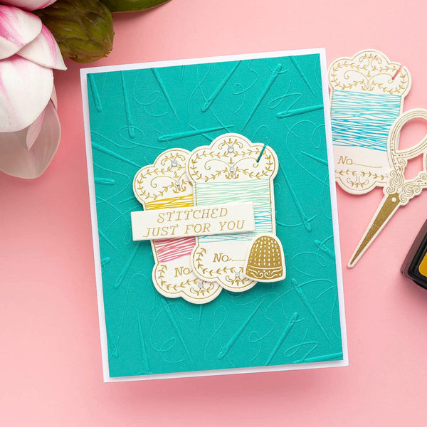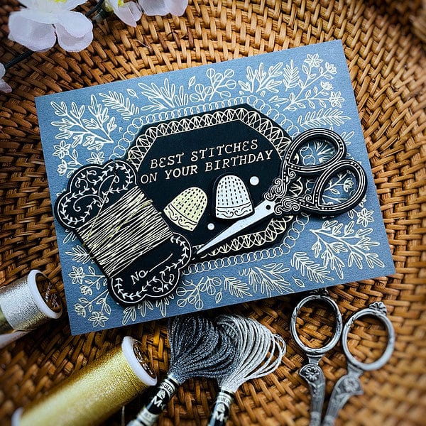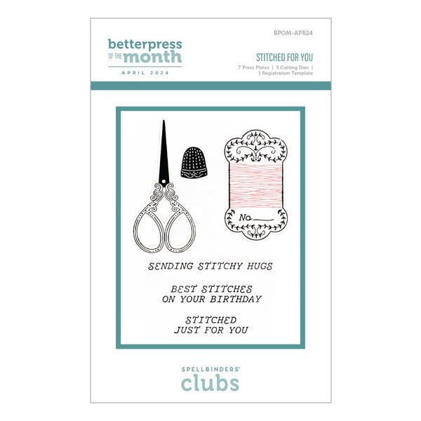 Stitched For You- BetterPress Plate of the Month - Released April 2024 to our BetterPress Plate the Month Club creates beautiful vintage scissors, thimble, spool card, and sweet sentiments. Use to create cards, décor, gift card holder, gifts, and more!
