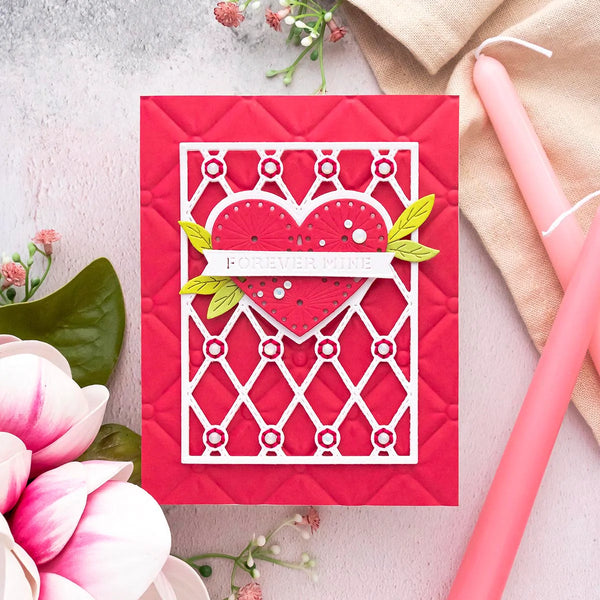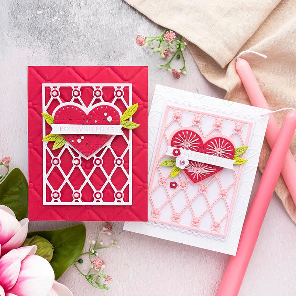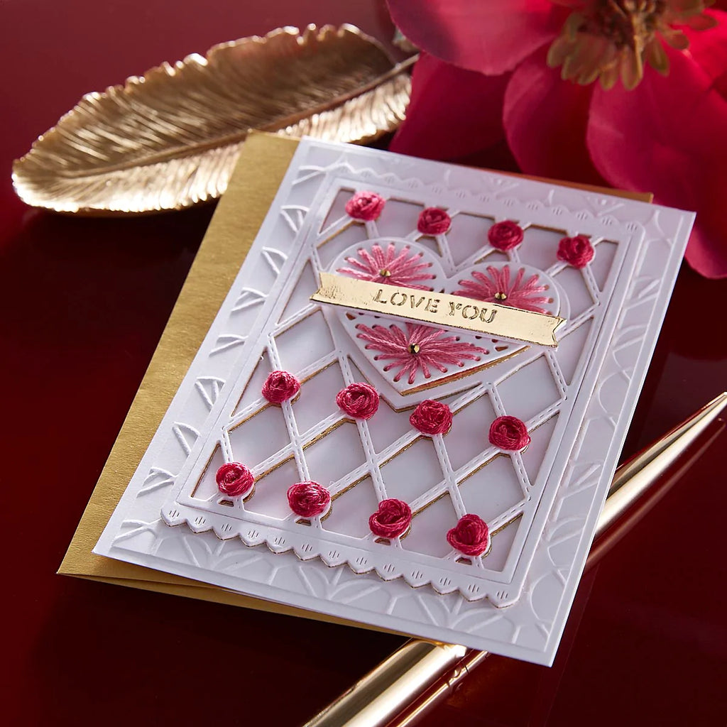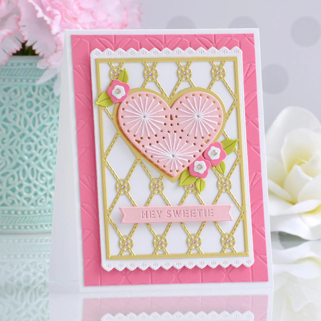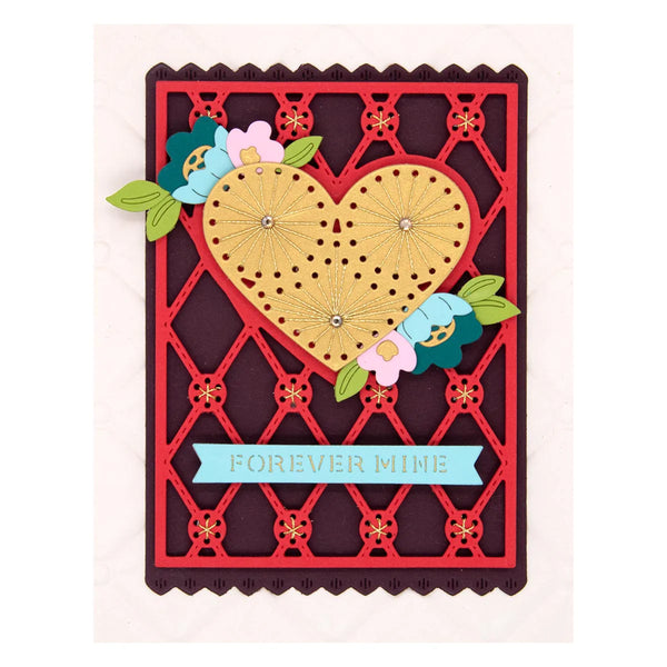 Stitched Heart Card Front - Small Die of the Month Club December 2022: die set, cuts, embosses, debosses, and stencils. Released December 2022 to our Small Die of the Month Club was hugely popular for the perfect summer vibe. Use to create greeting cards, projects, gifts, and more!