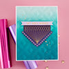 Stitched Kaleidoscope Hexi-Gem Etched Dies are part of the Hexi-Gems Collection with a set of four thin metal cutting dies. Nest the outline and insert together to cut twice into an amazing and intricate diamond-inspired hexagon shape. Each edge has a different decorative design and when stacked, creates interest and dimension. The stitching insert cuts dots to act as a guide for stitching with embroidery floss and needle.