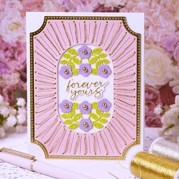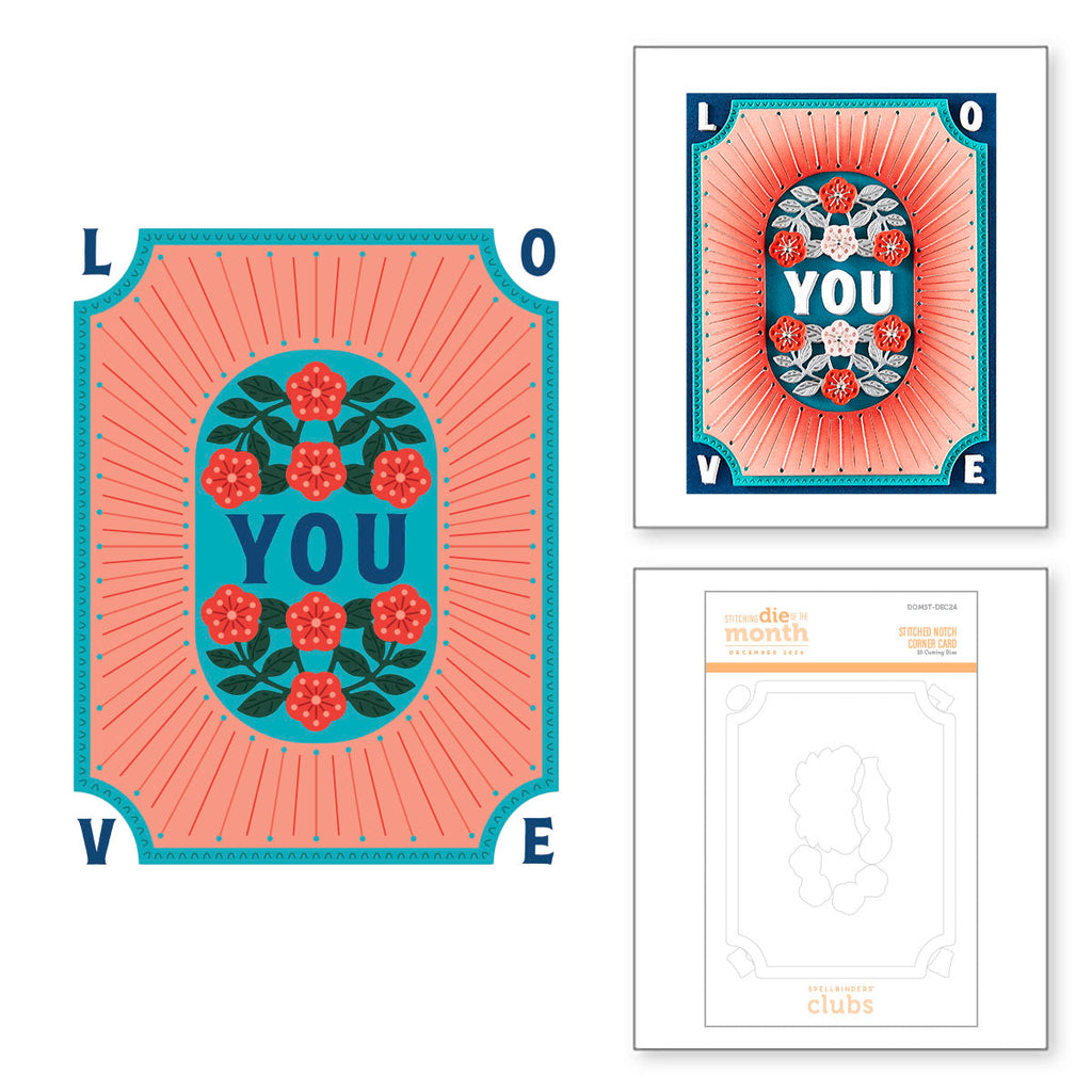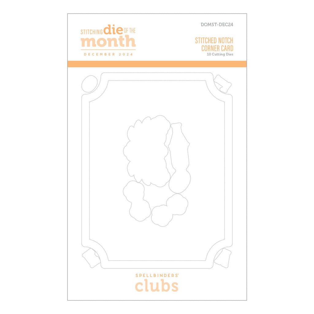 Stitched Notched Corner Card - December 2024 Stitched Die of the Month: This elegant 10-piece die set features intricate stitching details and a sophisticated notched corner design, perfect for creating standout cards. The set includes beautiful floral and sentiment elements to add a personal touch to your projects. Perfect for special occasions or everyday crafting, this set elevates your creations with timeless elegance!