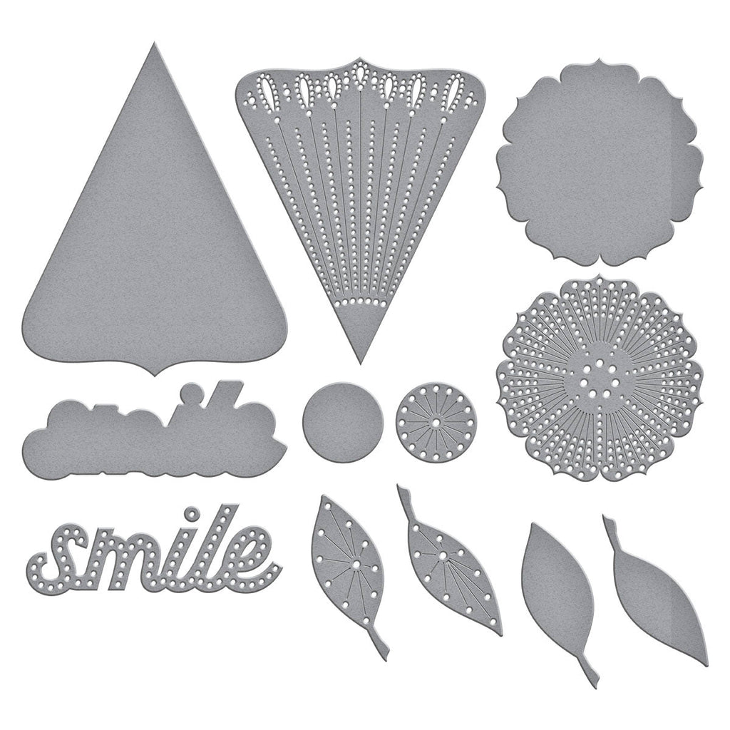 Stitched Petal Bloom Etched Dies are part of the Storytelling by Spellbinders Collection and has a set of 12 thin metal cutting dies. When assembled, it makes a magnificent floral blossom full of wonderful details! The petal, leaf, and flower center inserts cut intricate patterns to act as a guide for stitching with embroidery floss and needle. Or use the designs as is because the embossed patterns act as faux stitched details.