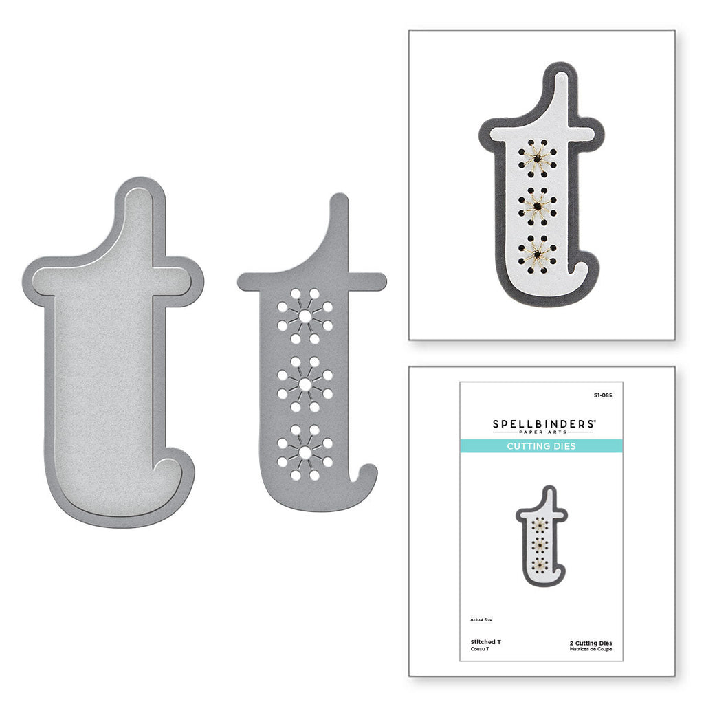 This Stitched t Etched Dies is from the Stitched Alphabet Collection. The set of two thin metal dies that include the serif font of the lowercase letter t and its outline shape. The letter cuts sweet floral burst accents of dots and lines which acts as a guide for stitching the pattern with embroidery floss and needle. Or use as is. The choice is yours! Designer’s Tip: use two strands of a six-strand DMC Floss or DMC Diamant Metallic Thread and Size 22 Tapestry Needle (sold separately) are recommended.