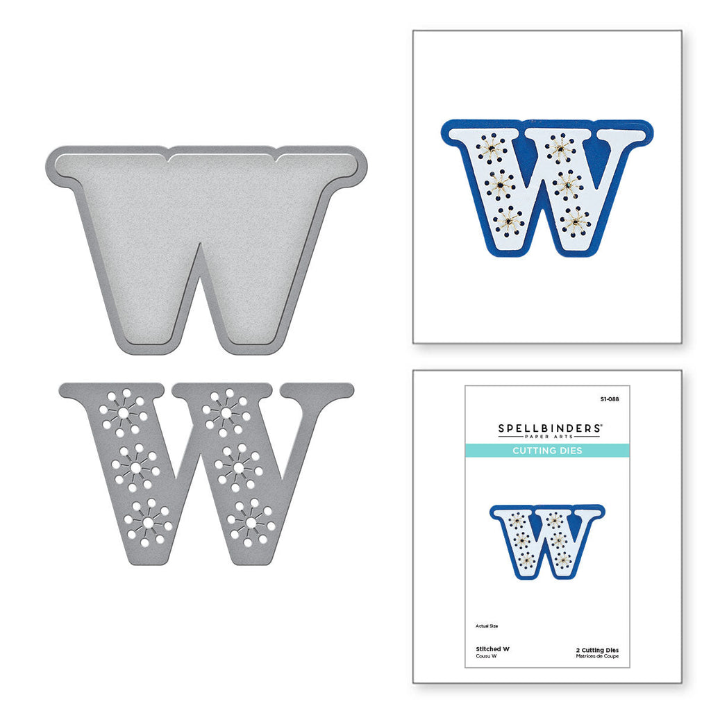 This Stitched w Etched Dies is from the Stitched Alphabet Collection. The set of two thin metal dies that include the serif font of the lowercase letter w and its outline shape. The letter cuts sweet floral burst accents of dots and lines which acts as a guide for stitching the pattern with embroidery floss and needle. Or use as is. The choice is yours! Designer’s Tip: use two strands of a six-strand DMC Floss or DMC Diamant Metallic Thread and Size 22 Tapestry Needle (sold separately) are recommended.