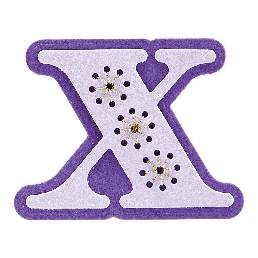 The Stitched x Etched Dies is part of the Stitched Alphabet Collection. The set of two thin metal dies that include the serif font of the lowercase letter x and its outline shape. The letter cuts sweet floral burst accents of dots and lines which acts as a guide for stitching the pattern with embroidery floss and needle. Or use as is. The choice is yours! Designer’s Tip: use two strands of a six-strand DMC Floss or DMC Diamant Metallic Thread and Size 22 Tapestry Needle (sold separately) are recommended.