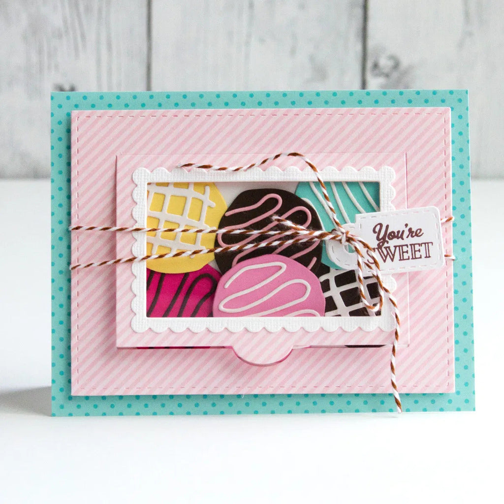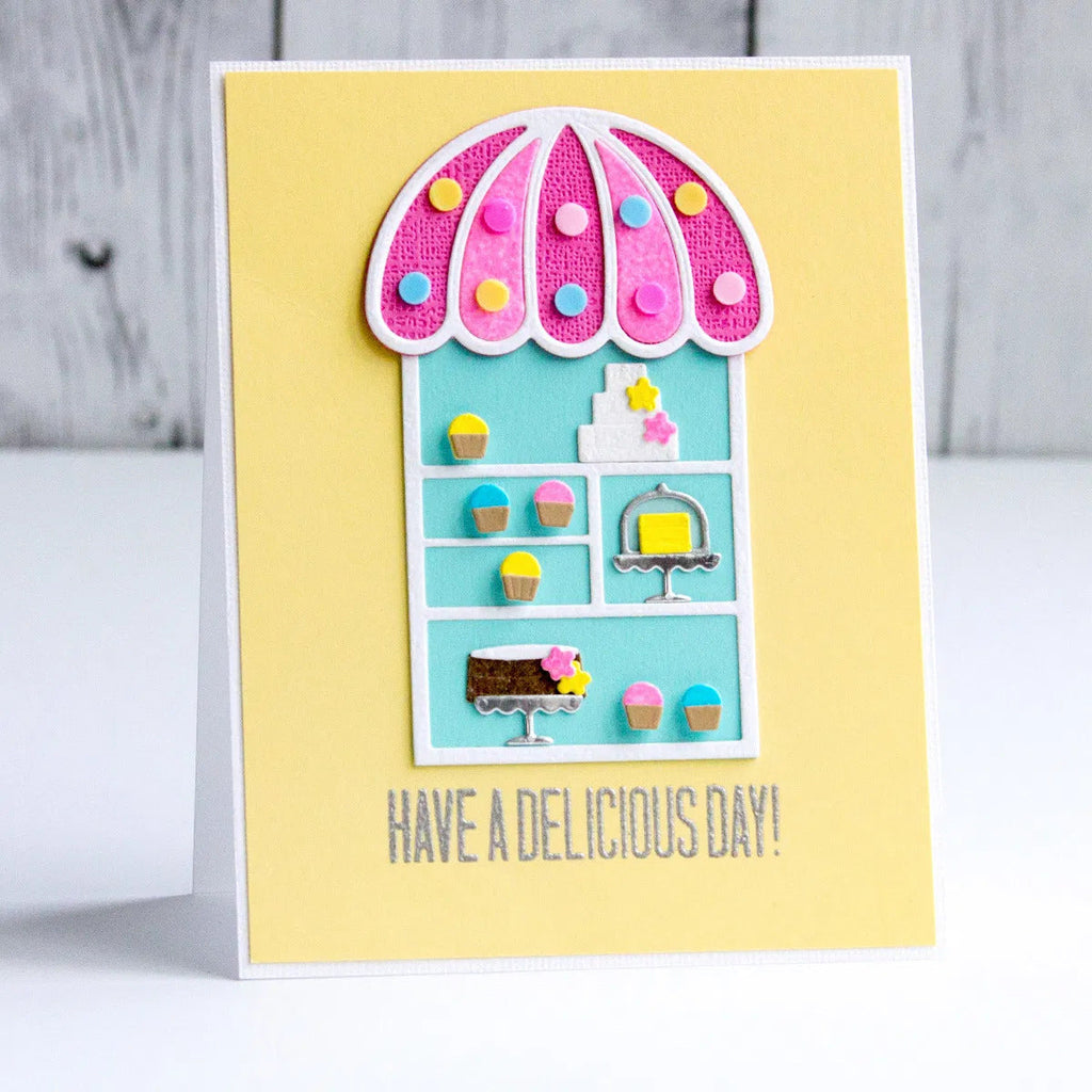 Sweet Street is Tina Smith's debut collection with Spellbinders. Tina's love of cardmaking and baking are combined into this sweet ensemble that has cookies, cakes and more! So, what's your favorite sweet treat?