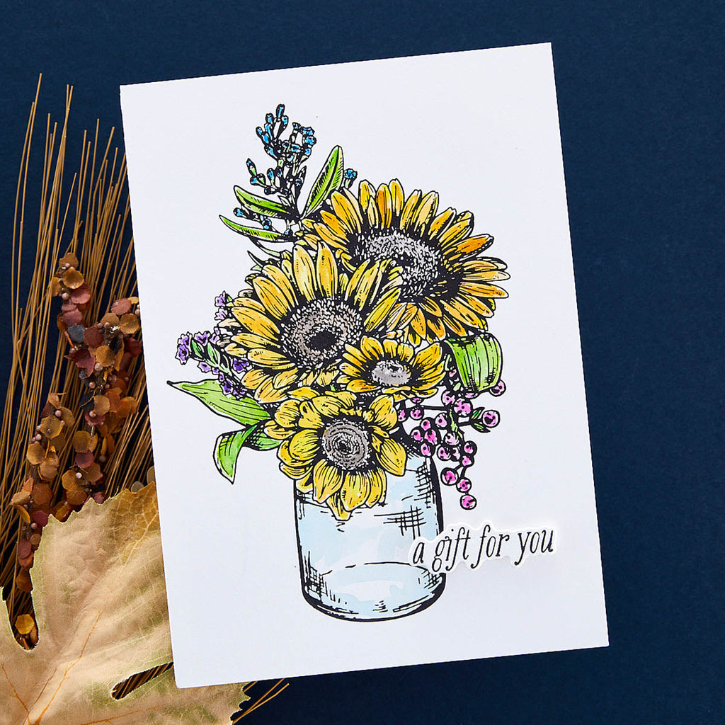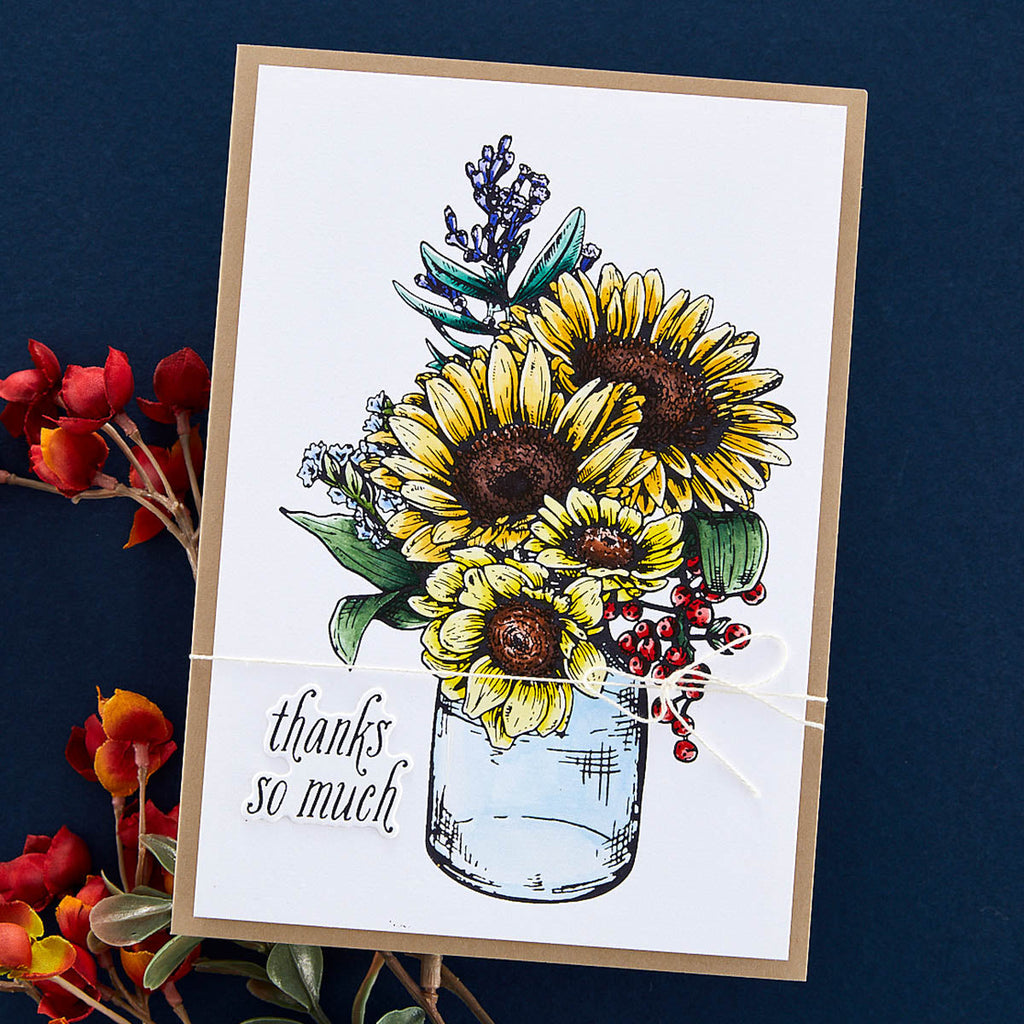 Sunflower Bouquet Press Plate & Die Set is part of the Serenade of Autumn Collection and comes with a lovely sunflower bouquet in a container press plate. To finish out the set, there are four sentiment press plates with coordinating dies to cut out each phrase. Ink the plates with the BetterPress Ink to be pressed against the BetterPress Cotton Card Panel and Sheets for a crisp letterpress design.