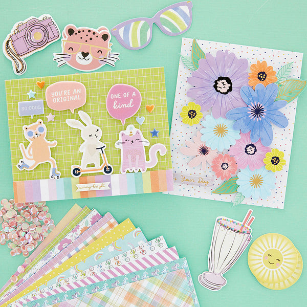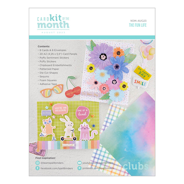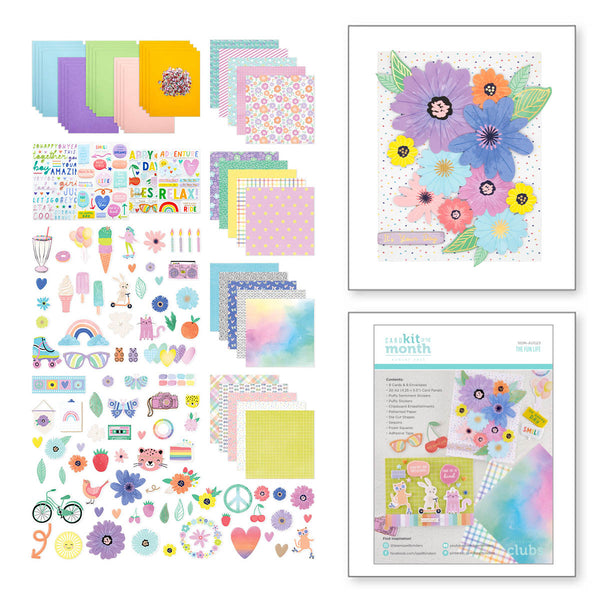 The Fun Life 2023 August Cardmaking Kit is a must have! Show others how much they mean to you with this kit featuring beachy and summer themed embellishments and sentiments. This cardmaking kit is perfect for anyone who loves to craft, die cut, and make beautiful handmade cards. Stay Sweet & Cool with enough items to create 8 full cards.