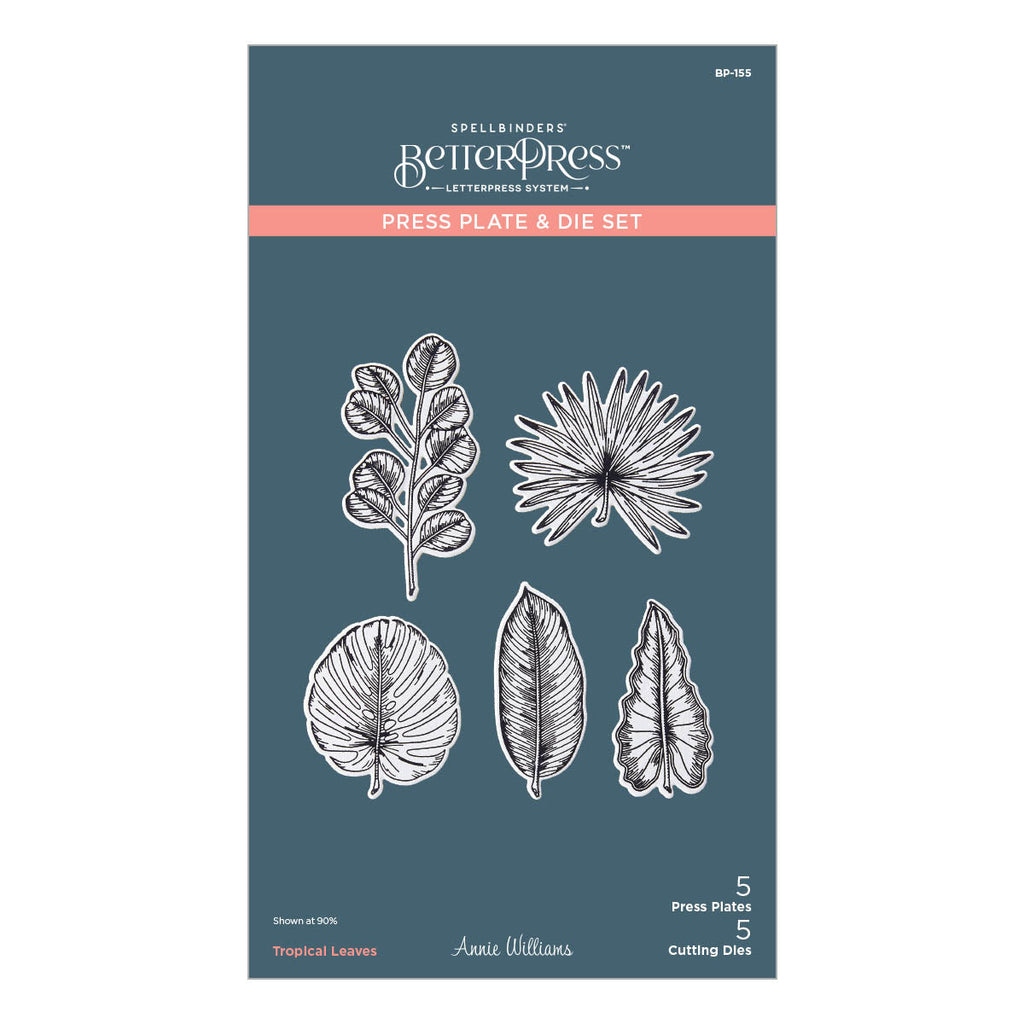 Tropical Leaves Press Plate & Die Set is from the Propagation Garden Collection by Annie Williams. This set of five press plates and coordinating dies is perfect for those with a green thumb! Featuring five different leaves from traditional tropical houseplants, you'll be creating beautiful stationery with a summery and fun feel. Ink the plates with the BetterPress Ink to be pressed against the BetterPress Cotton Card Panel and Sheets for a crisp letterpress design..