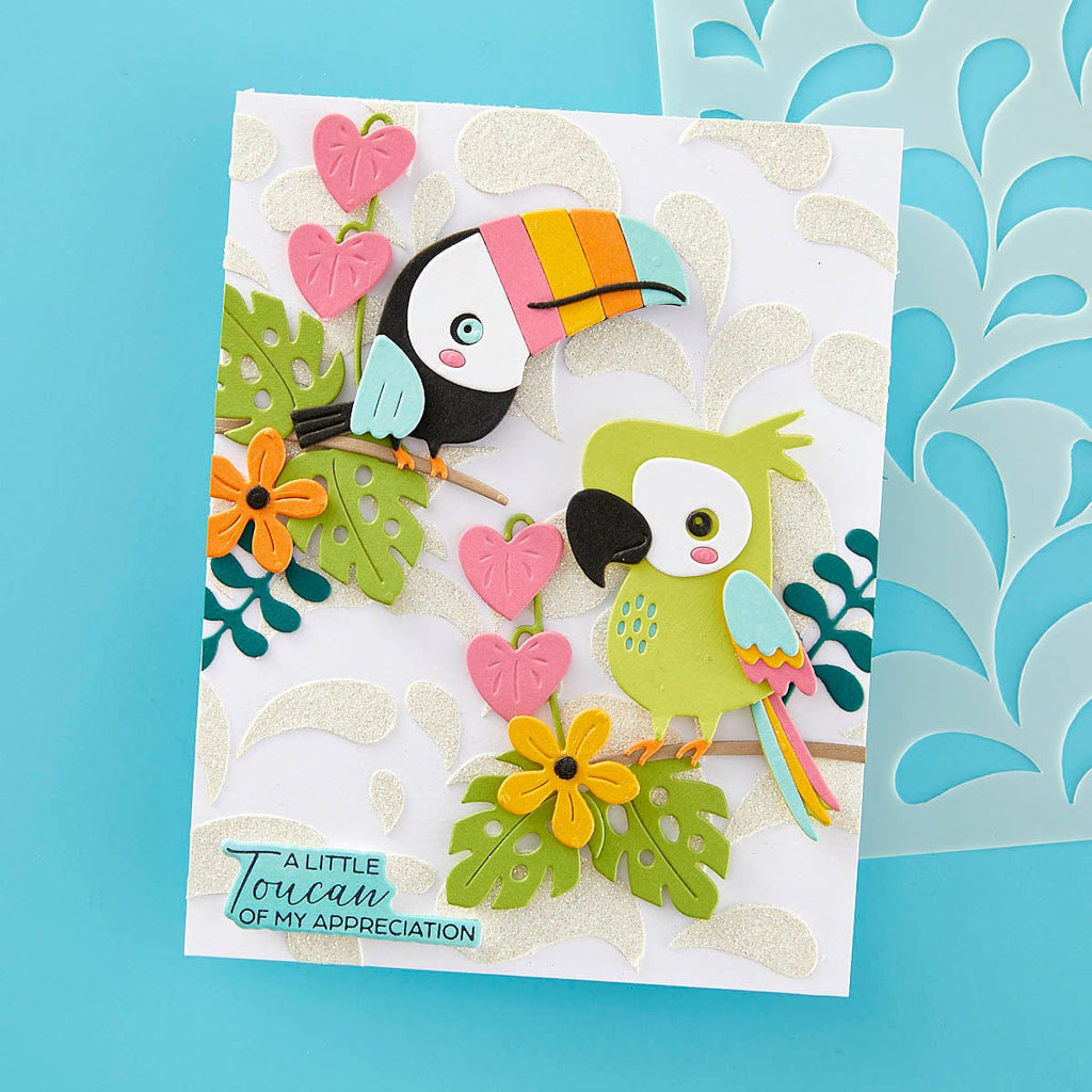Tropical Spray - Stencil of the Month - Released May 2024 to our New, Stencil of the Month Club creates a beautiful background for cards, décor, gift card holder, gifts, and more!