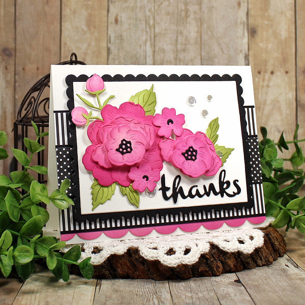 From the Garden is a debut collection by talented designer Wendy Vecchi with Spellbinders. Soft curves inspired by flowers and leafy vines found in a garden can be seen throughout these sets. Mix and match the thin metal cutting dies, clear stamps, embossing folder and more to make lovely cards, scrapbook pages and even mixed media pieces!