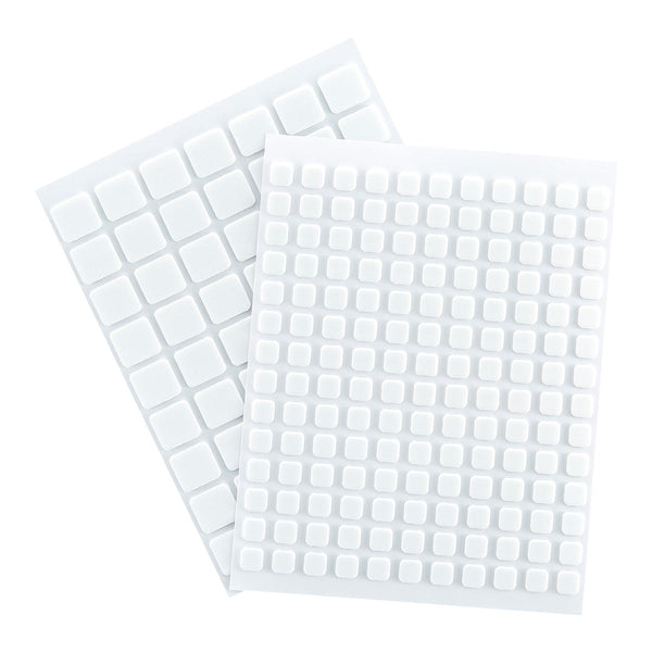 White Foam Adhesive Squares Mix - 1MM, include 154 small and 63 large for a total of 217 self adhesive pieces. Use to pop-up die cuts and add dimension to cards, crafts, and scrapbooks. Now half the height of our standard foam, for less bulk!